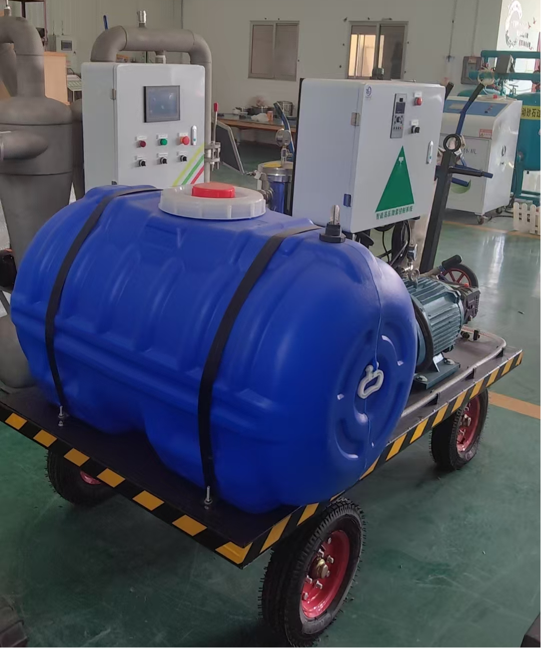 搭载工业级物联网监控系统,采用华为海思芯片支持边缘计算,实时采集泵体压力、电机温度、雾粒粒径等 12 项运行数据,预设三级预警机制,故障响应时间≤5 分钟。支持常规、堆垛密集、边角三种喷洒模式自动切换,可通过智能调度系统远程监控与参数调整。